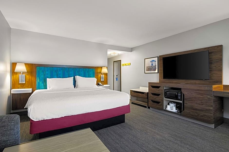 Any corresponding photo may not reflect the specific accessible room type or room feature. This mobility accessible, nonsmoking room features one king sized bed and an accessible bath tub. The room features a comfortable sofa bed, an HDTV and easy to operate alarm clock/radio. The free internet access will help you stay connected while on the road. If you prefer not to work at the desk, you can use the convenient lapdesk instead. You'll also enjoy the convenience of having a coffee maker with tea service and iron/ironing board in your room.